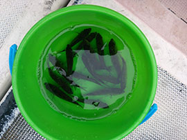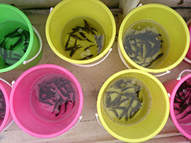 資源保護を目的とした稚魚放流は今年で6回目になります。成長したら一匹のメスが数十万~数百万個の卵を産みます。