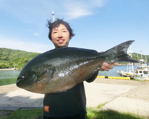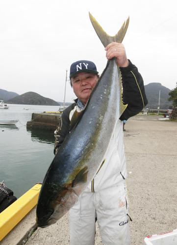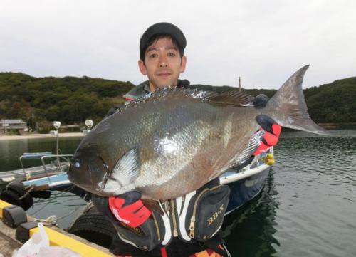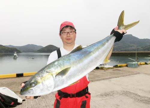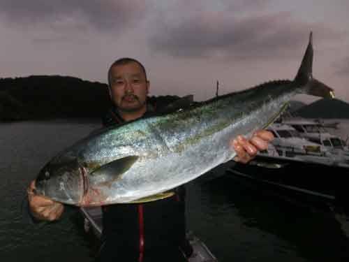 2020年3月30日: 岸川さんは、阿値賀島での上カゴ釣りでヒラマサ 10.5kg をGET |