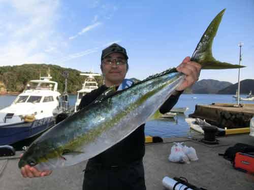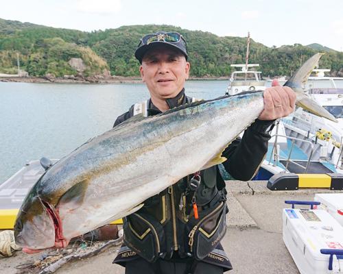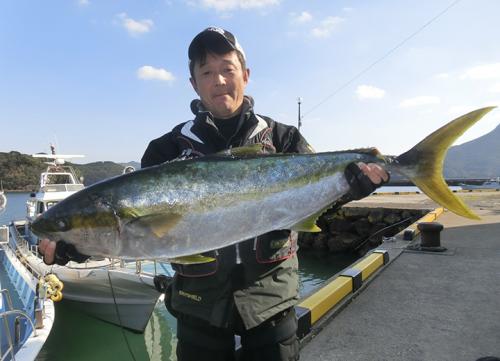 2020年1月5日: 佐藤さんは阿値賀島での上カゴ釣りで良型ヒラマサをGET |