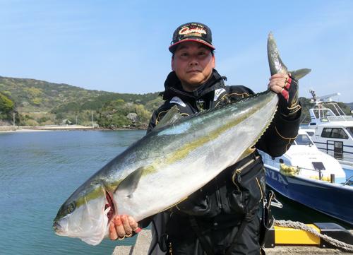 2020年4月11日: 阿値賀島で松永さんは、上カゴ釣りで良型ヒラマサをGET |