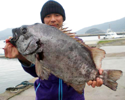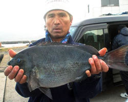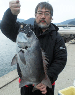 1月14日、二木さんは、地磯にてイシダイ70.5cm5.6kgを見事捕獲!おめでとうございます!! |