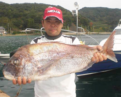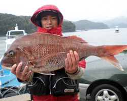 11月28日、富田さんは、阿値賀島にてマダイ77.5cm5.5kgをGETしました! |