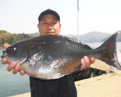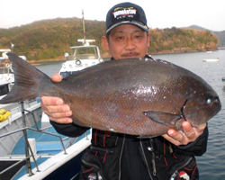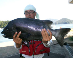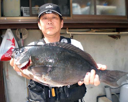 6月4日、根橋さんは、阿値賀島にてクチブトクロ49cm2.1kg、オナガ44.5cm1.5kgをGETしました。 |