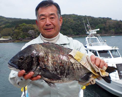 5月6日、水上さんは、地磯にてマダイ最大6kg、他良型オナガ、イサキGETしました。 |