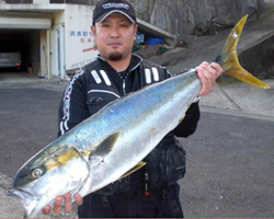 11月22日、前村さんは、阿値賀島にて上カゴ釣りでヒラマサ6.5kgを仕留めました。 |