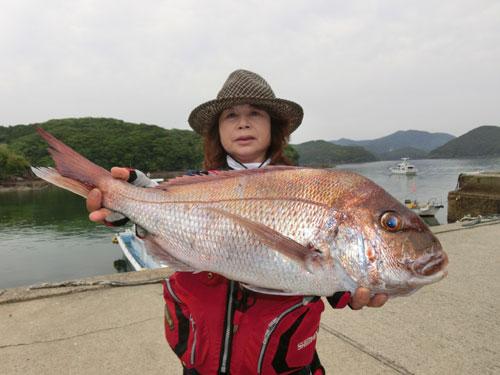 2018年6月14日: みさ子さんは地磯にて良型マダイをGET |